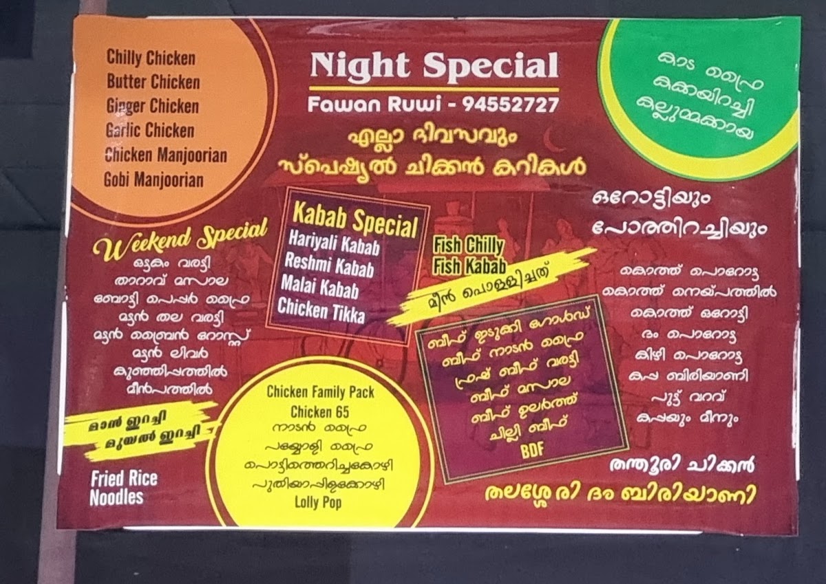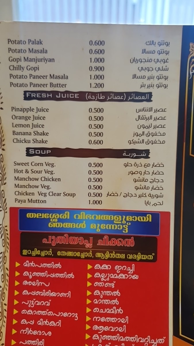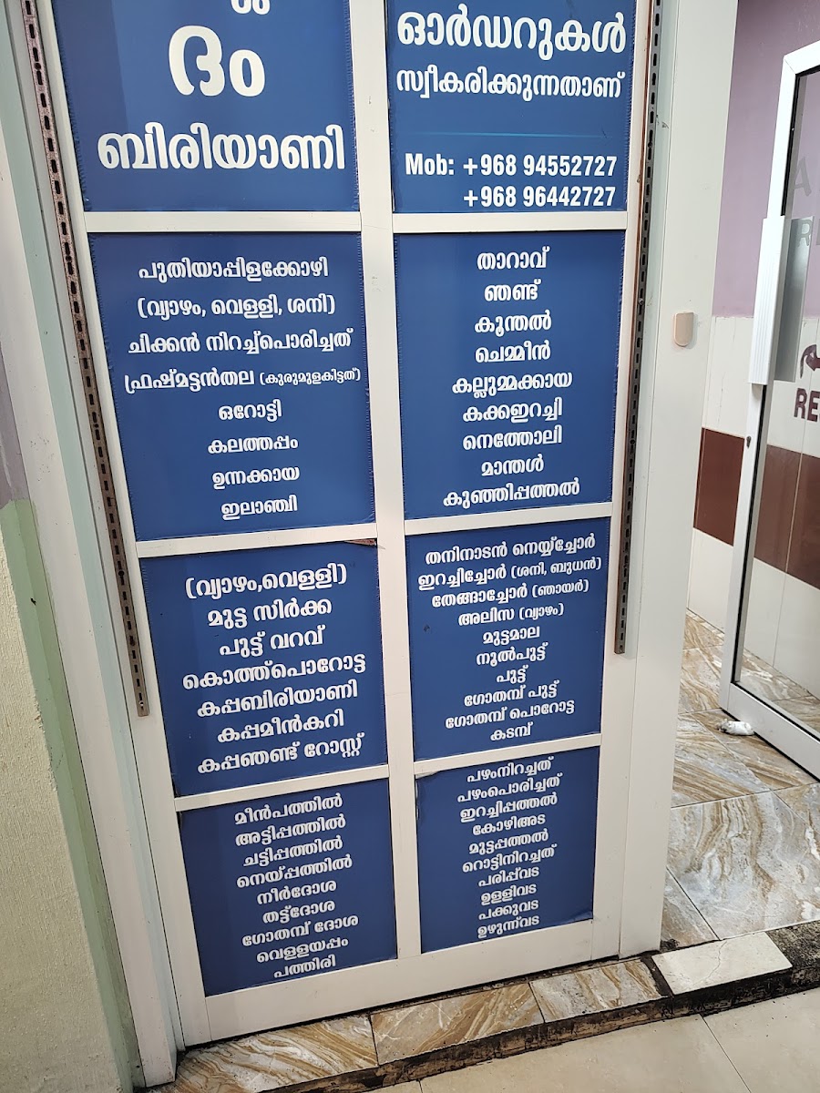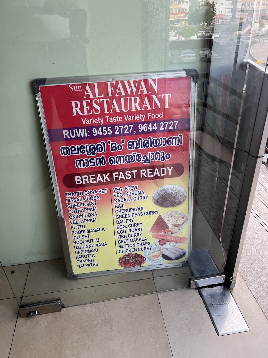 Al Fawan Restaurant Ruwi offers a menu that reflects the comforting and rich flavors of traditional Indian and Kerala cuisine. The selection leans towards hearty, satisfying dishes that suit both casual lunches and more relaxed dinners with family and friends. You’ll find a variety of biryanis, such as Chicken Biriyani and Mutton Dum Biryani, alongside classic Kerala specialties like Masala Dosa, Pazham Pori with Beef Curry, and Neypathiri.