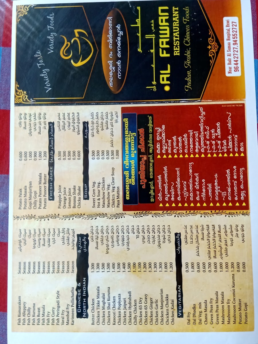 Al Fawan Restaurant Ruwi Menu